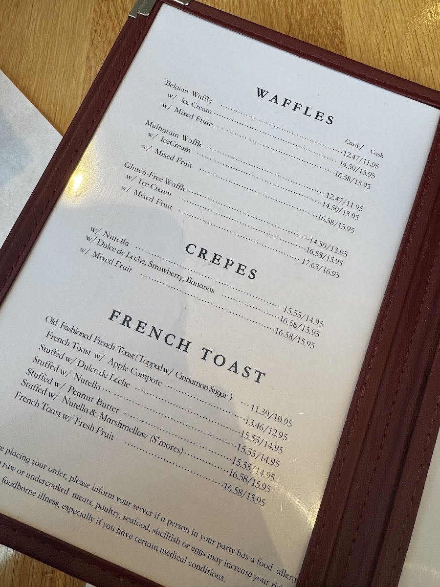 - Fluffy pancakes and Belgian waffles topped with fresh fruits and maple syrup
