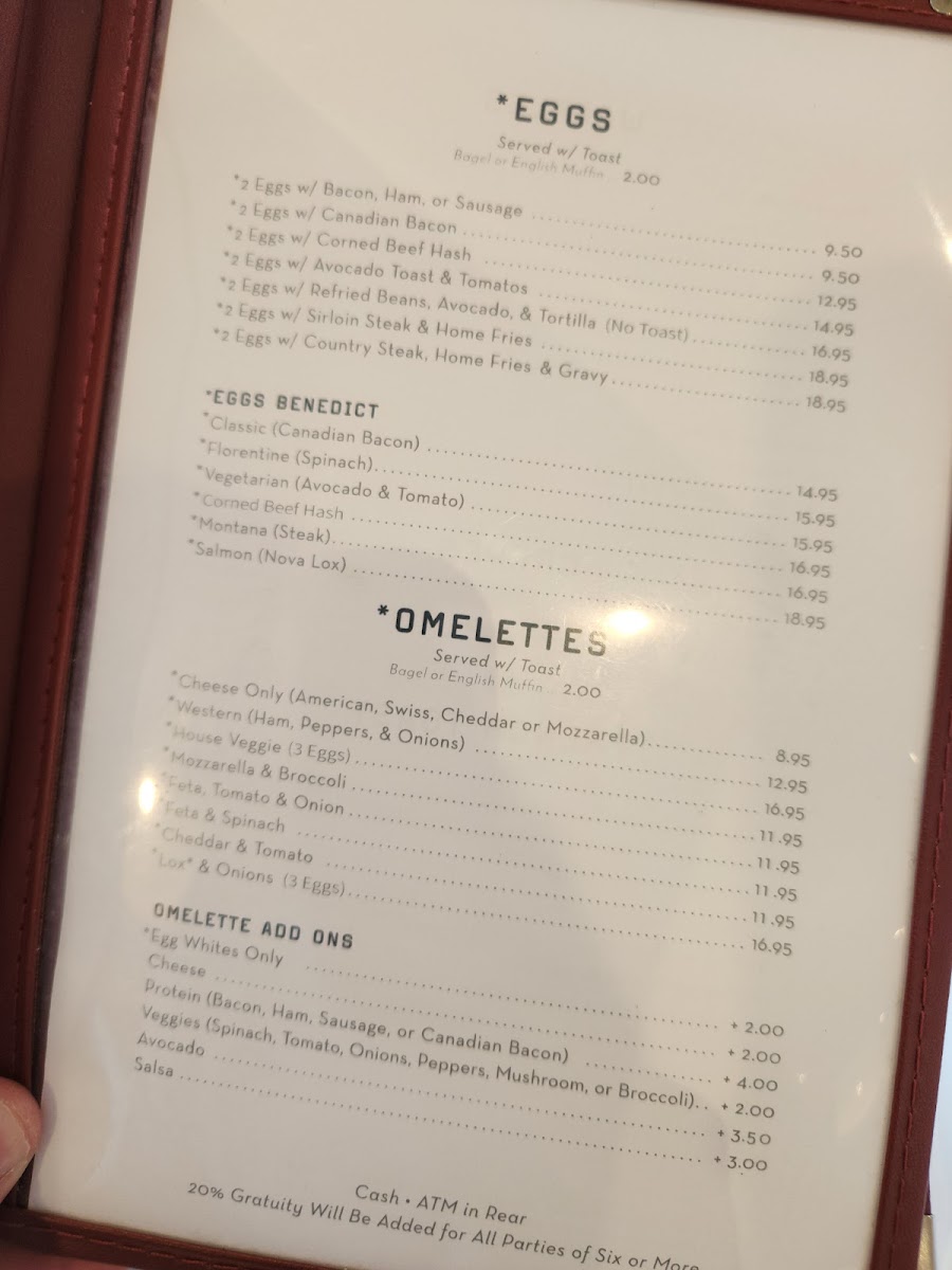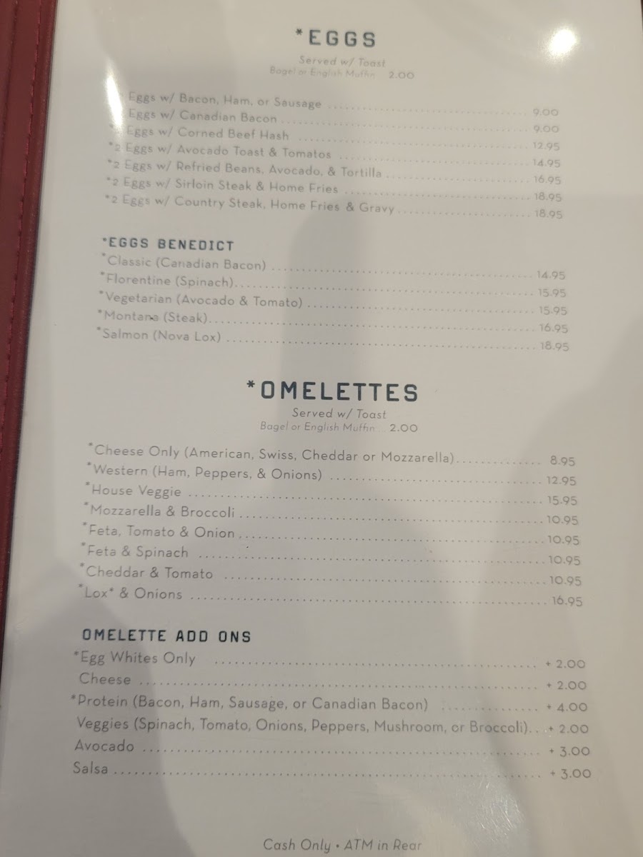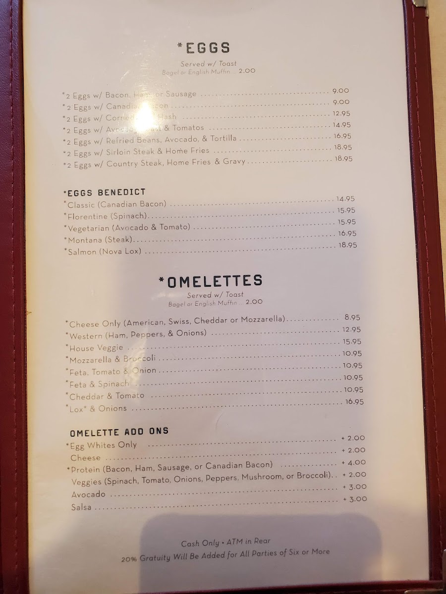 - Classic brunch plates like Eggs Benedict with salmon and steak with eggs